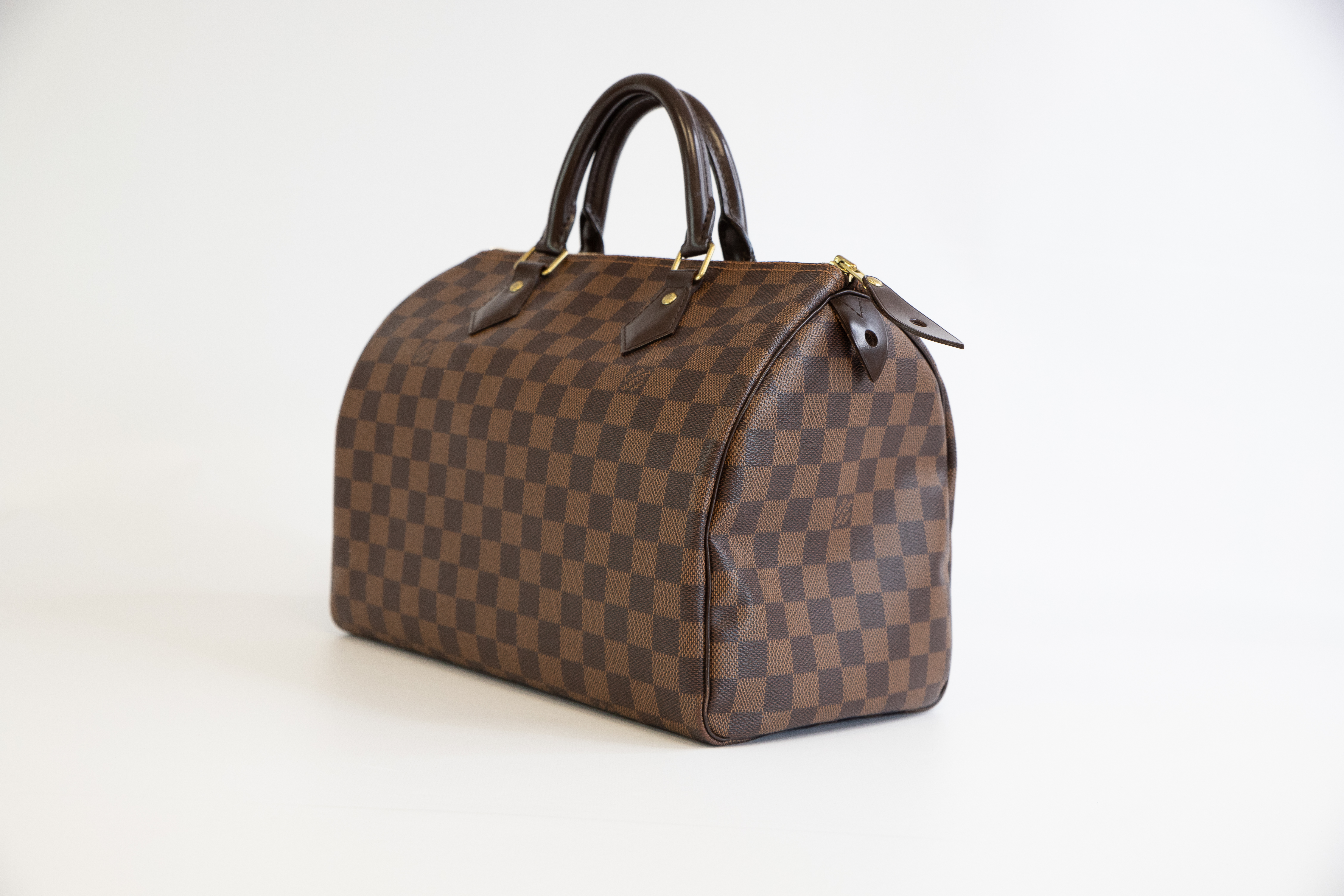 Die Louis Vuitton Speedy 30 im klassischen Damier Canvas ist eine der ikonischsten Handtaschen der Maison. Mit ihrem zeitlosen Karomuster und der eleganten Silhouette vereint sie Luxus, Funktionalität und Stil in Perfektion.Ihr 30 cm großes Format bietet ausreichend Platz für alltägliche Essentials, während die robusten Ledergriffe und goldfarbenen Metallelemente für eine edle Optik sorgen. Dank des praktischen Reißverschlusses sind deine Wertsachen sicher verstaut. Die Tasche kann in der Hand getragen werden oder mit einem zusätzlichen Schulterriemen (separat erhältlich) für einen lässigen Crossbody-Look ergänzt werden.- Damier Canvas – ikonisches Karomuster für einen eleganten Look- 30 cm Format – geräumig & perfekt für den Alltag- Hochwertige Ledergriffe & goldfarbene Metallelemente- Sicherer Reißverschluss zum Schutz deiner Essentials- Klassisches & vielseitiges Design – ideal für jeden AnlassZubehör: Box, Dustbag, Schloss, SchlüsselMaße: 30 x 21 x 17cmSie erhalten zu jedem gekauften Artikel ein Echtheitszertifikat.